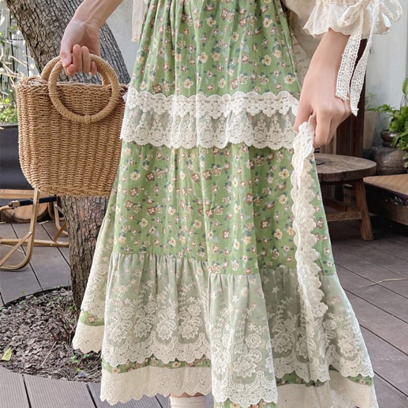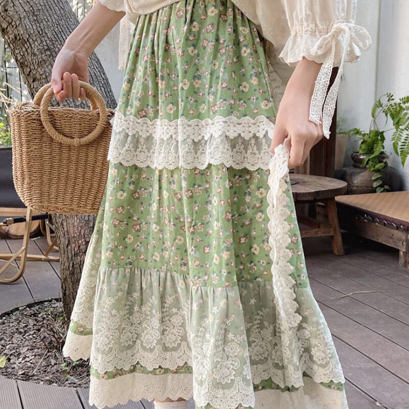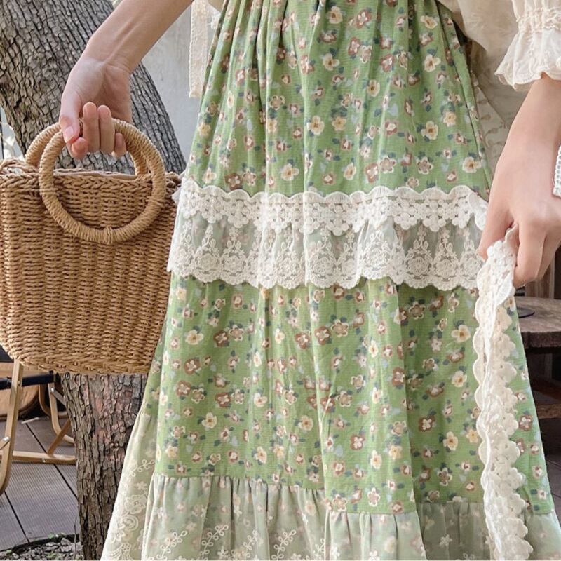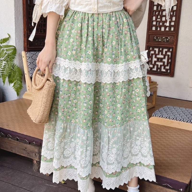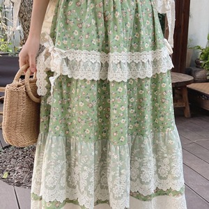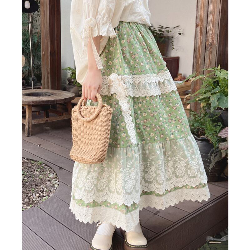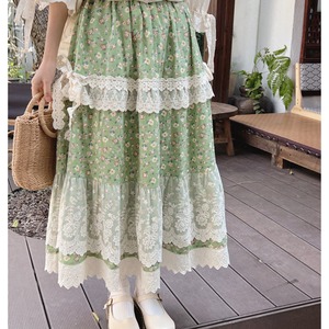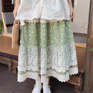 レイヤードされたレースが優美なロングスカートです。小花柄の生地と繊細なレースの組み合わせが、フェミニンでロマンティックな雰囲気を演出します。フレアシルエットが女性らしい優しさを引き立て、歩くたびに揺れる裾が魅力的。カジュアルなトップスと合わせれば、デイリーユースにもぴったりです。特別な日の装いにも活躍する、一枚持っておきたいアイテムです。