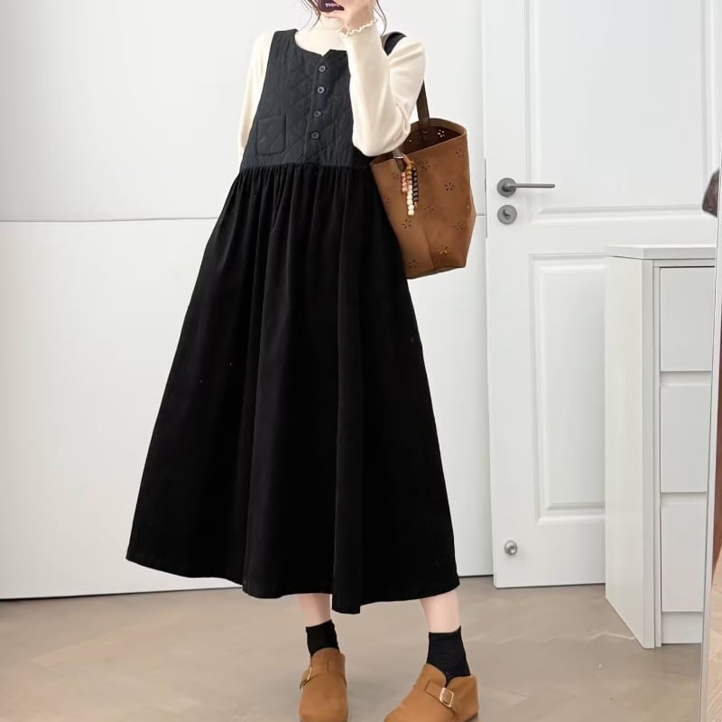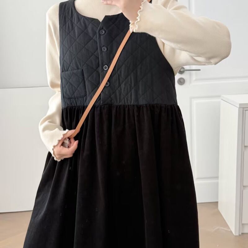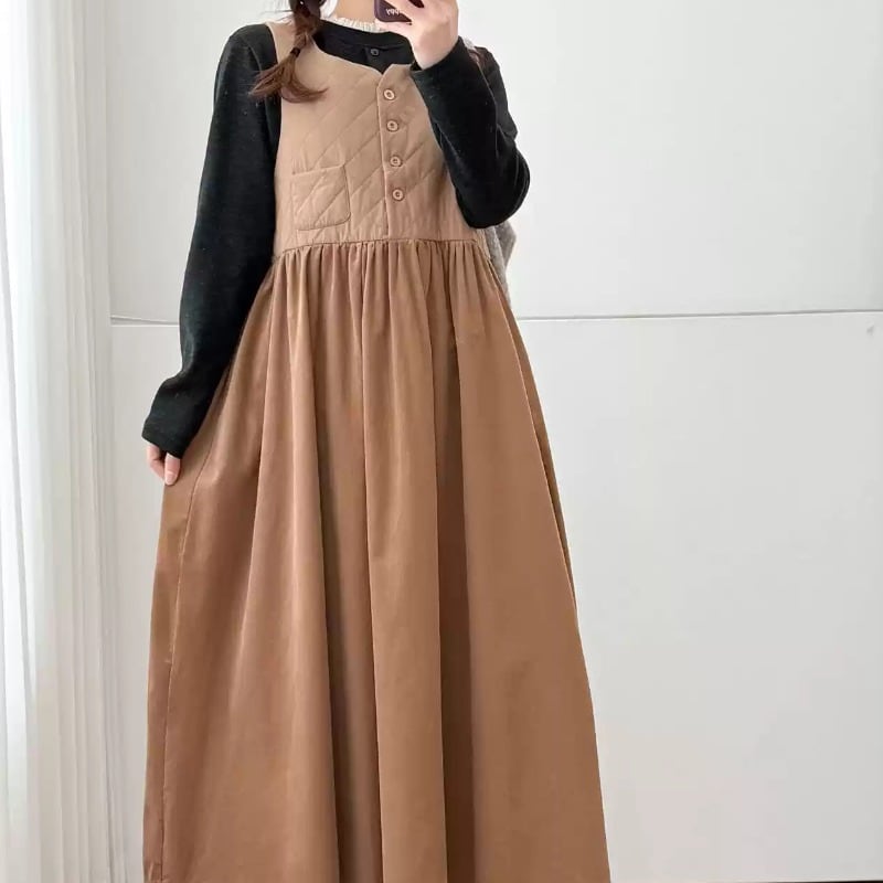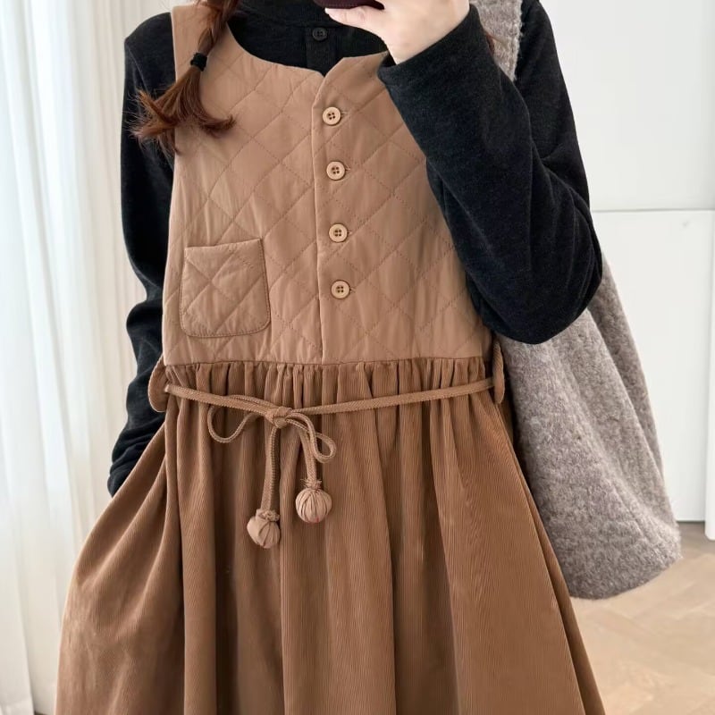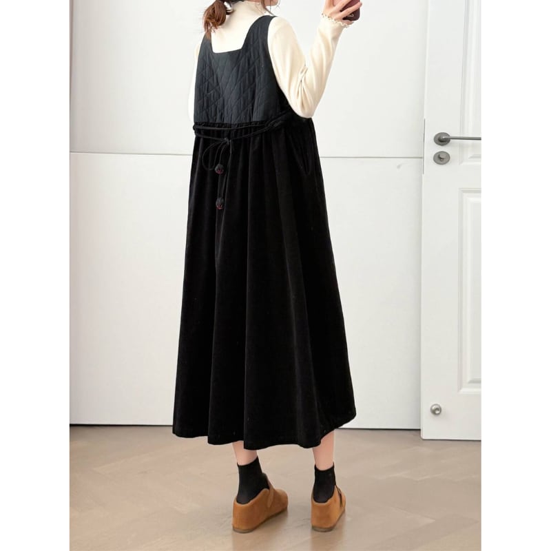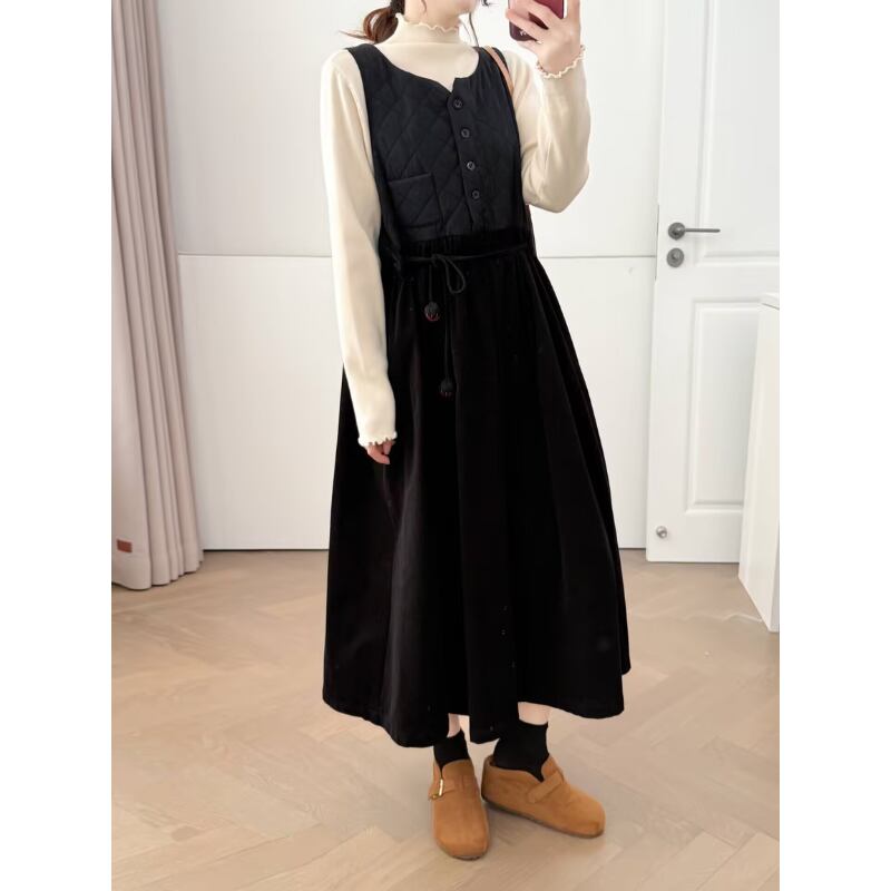 キルティング ウエスト切り替えジャンパースカート 2col 1053