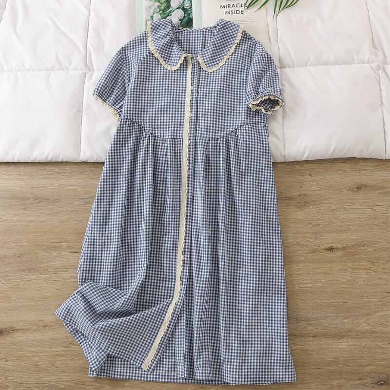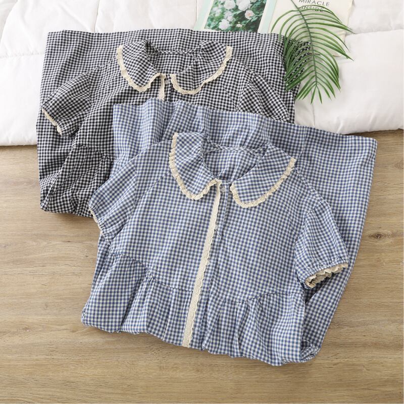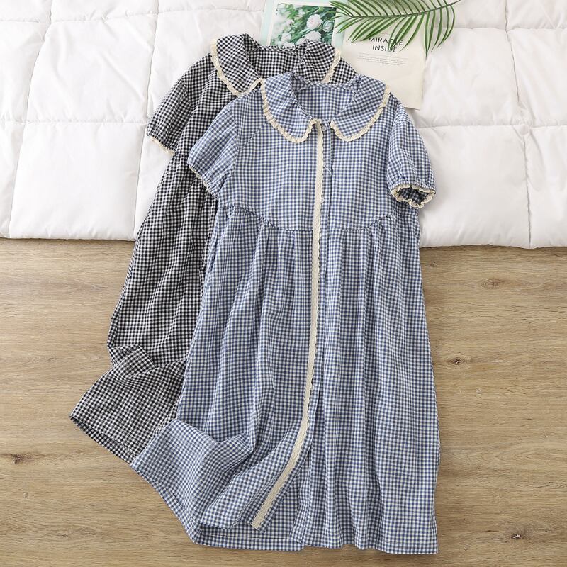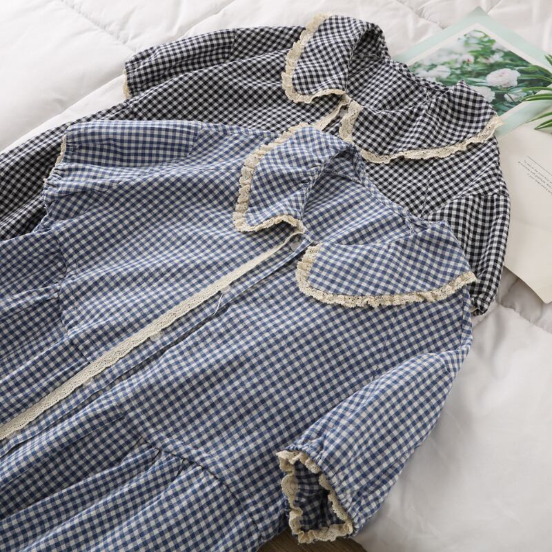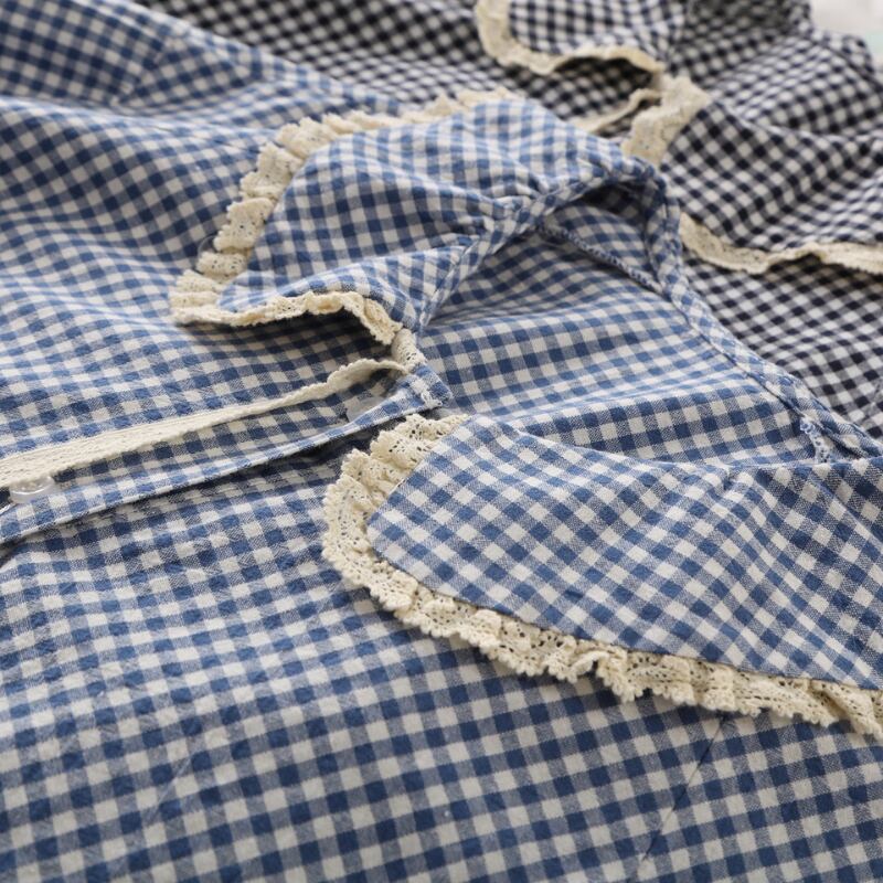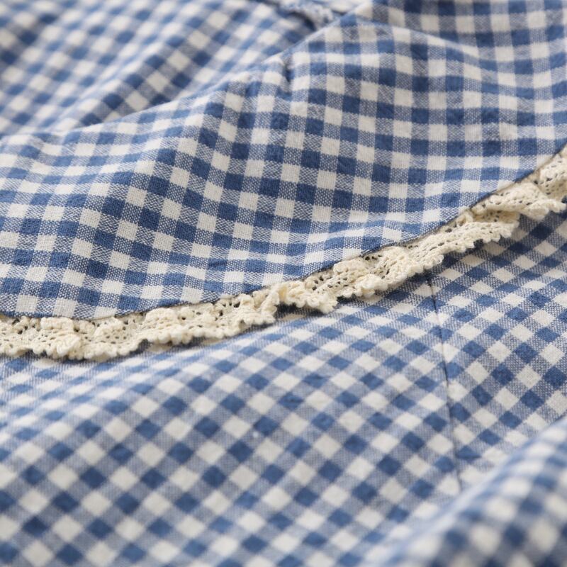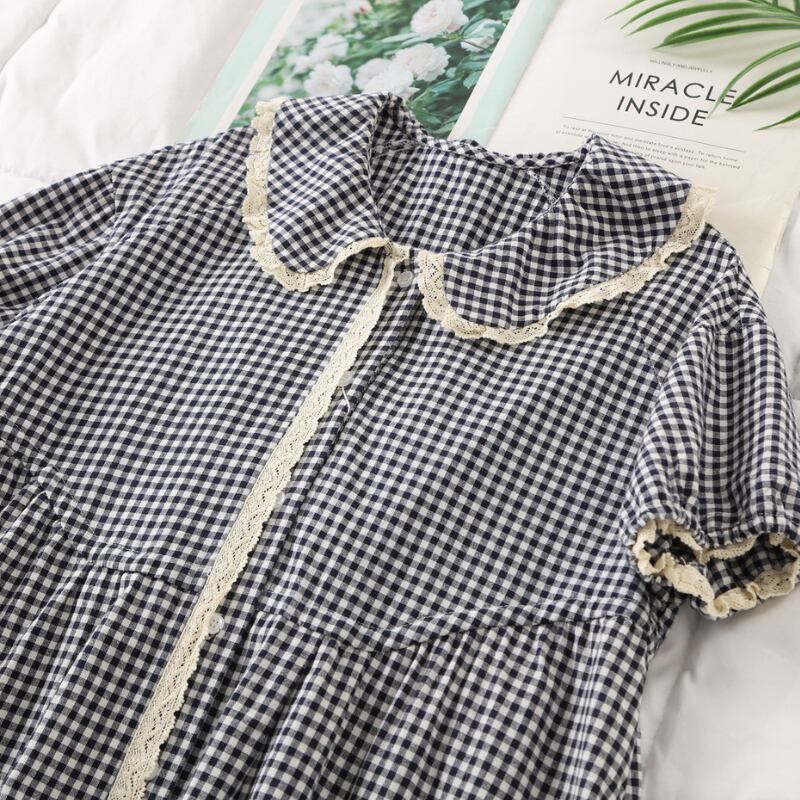 レース襟 ギンガムチェックシャツワンピース 2col 1059