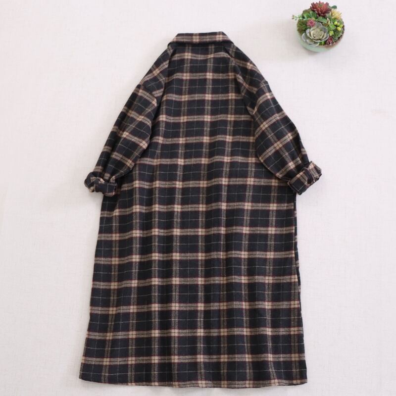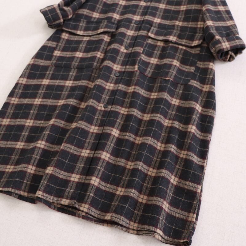 長袖 チェック柄 Aライン シャツワンピース 1065