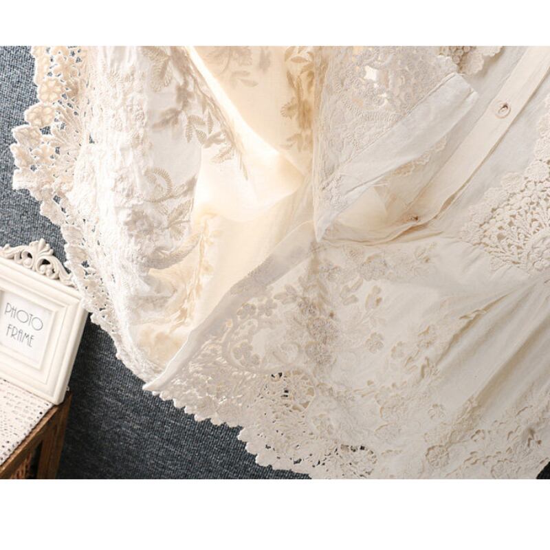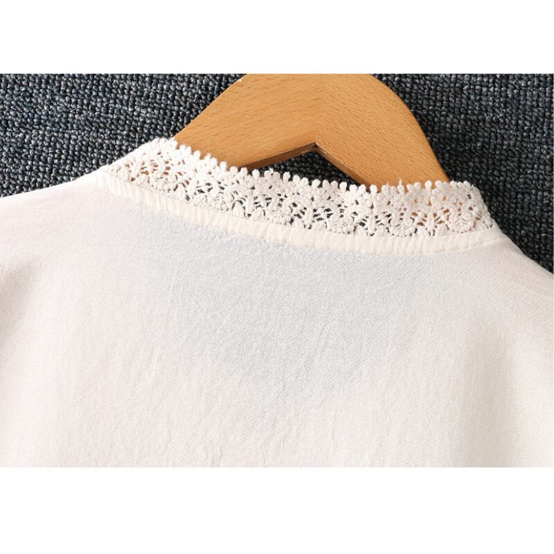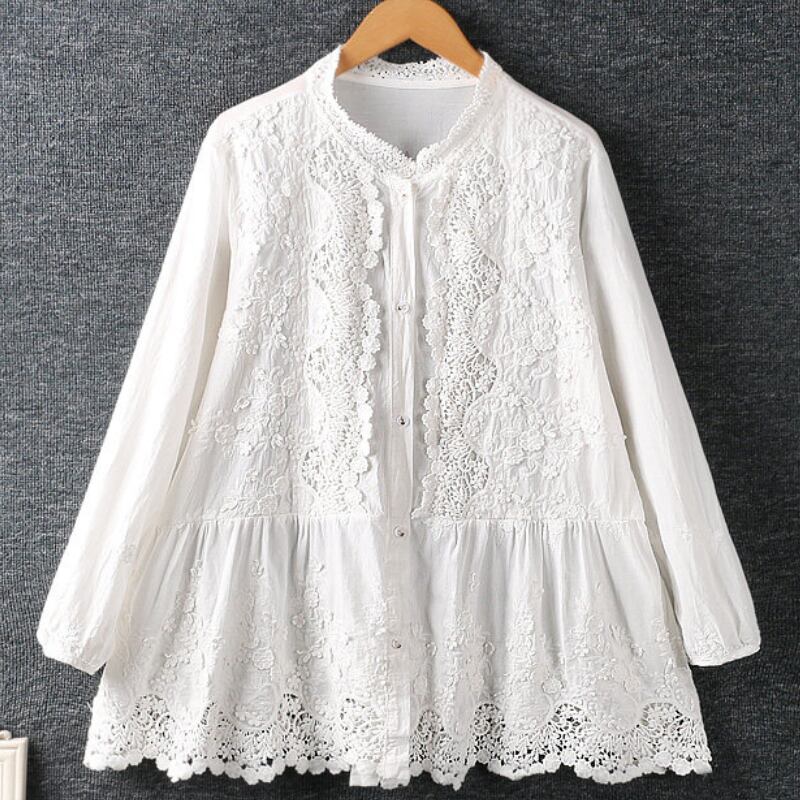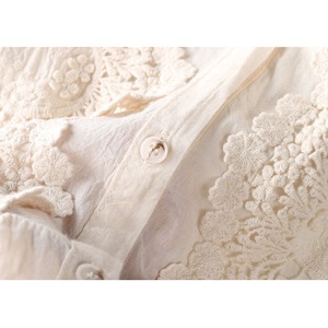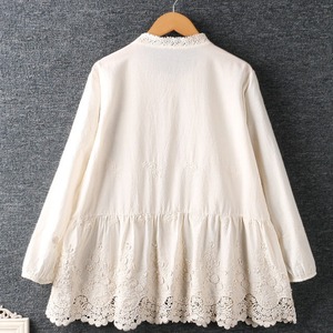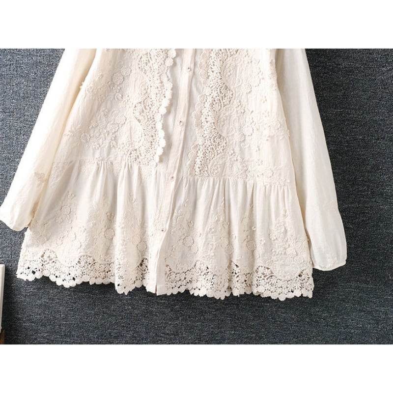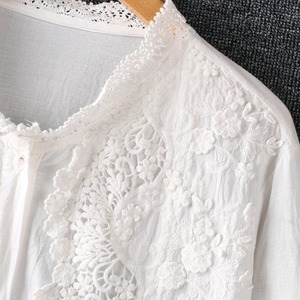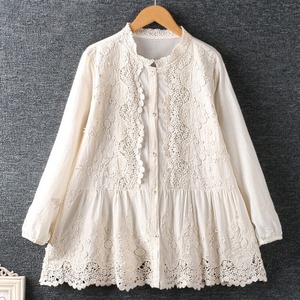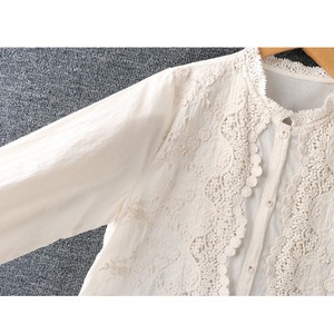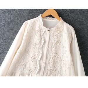 長袖 バンドカラー レース ブラウス 2col 1075