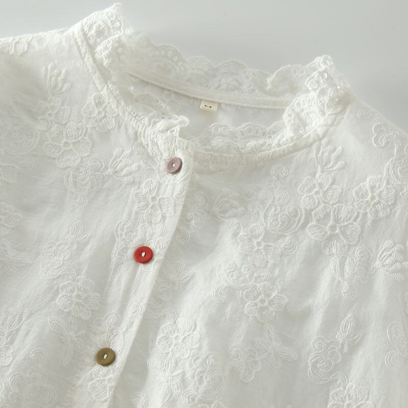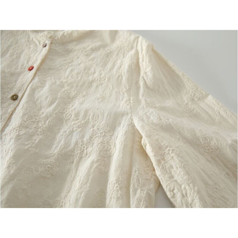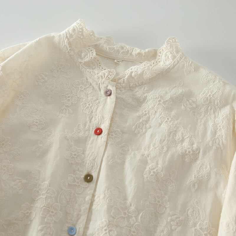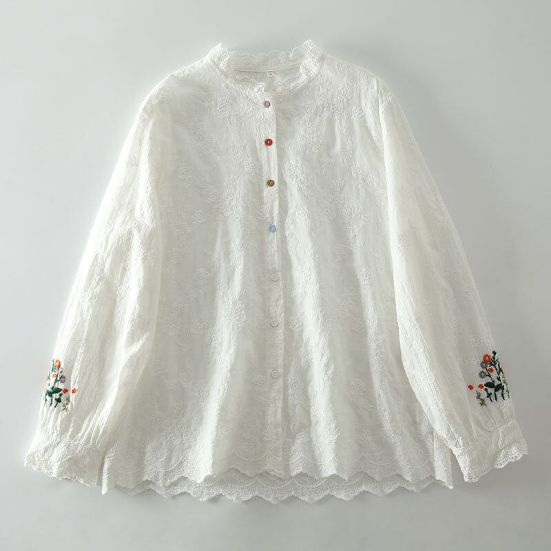 レースのスタンドカラーが首元を上品に演出する長袖シャツです。 フロントのボタンデザインがアクセントになり、着こなしに個性をプラス。 カラフルなボタンと袖の刺繍がさりげないアクセントになり、華やかさを添えます。 ■サイズ 【M】 肩幅:42cm 胸囲:110cm 着丈:68cm 袖丈:58cm 裾丈:57cm 【L】 肩幅:43cm 胸囲:114cm 着丈:69cm 袖丈:59cm 裾幅:59cm 海外製品の為1~3cm誤差がある場合がございます。 ■カラー ホワイト オフホワイト ■素材 コットン ShopのTOPページはこちら↓ https://shop.laceandclover.com/ ■注意事項 ・当店の商品はご注文を受けてから、一つ一つ、発注、検品をしています。 ・その為、1~3週間で発送となります。お時間いただきますので、余裕を持ってご購入お願い致します。 ・タイミングによっては 商品在庫切れにより、注文キャンセルとさせていただく恐れもございますので、予めご了承くださいませ。 その場合はショップからメールでご連絡いたします。 ・こちらは輸入品となります。日本製とは検品基準が異なる為、ご理解のうえご購入ください。 ・商品の色味は、お手持ちのデバイスの画面によって実物と若干異なる場合がございます。 ・イメージ違いやサイズ交換等、お客さまご都合による交換、返品はご遠慮ください。 ・SHOPの『ご購入前に必ずお読みください』をよく読んでから、ご購入お願いします。 https://shop.laceandclover.com/about