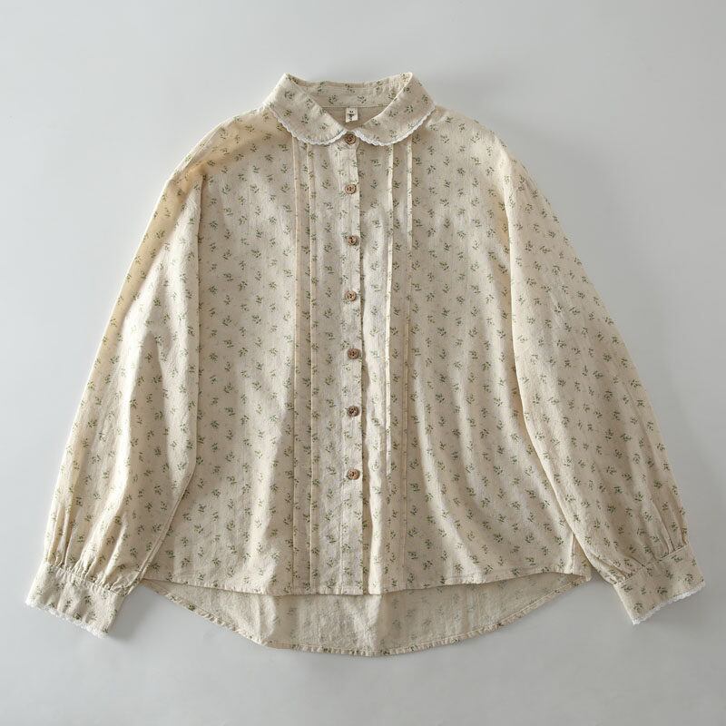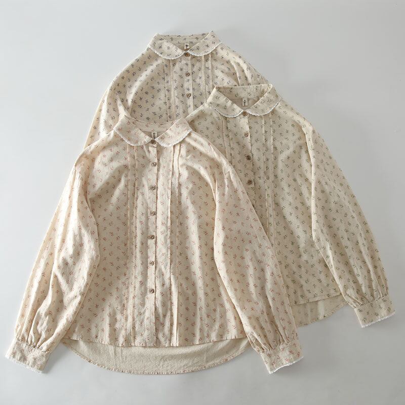 丸襟が特徴的な繊細な小花柄を散りばめた長袖シャツです。 フロントのボタンデザインとピンタックが、さりげなく可愛らしさを演出。 カジュアルな普段使いはもちろん、少し上品な装いにも合わせやすい一枚です。 ■サイズ 【M】 肩幅:49cm 胸囲:116cm 裾幅:122cm 袖丈:56cm 袖周り:40cm 着丈(前):63cm 着丈(後):69cm 【L】 肩幅:50cm 胸囲:120cm 裾幅:126cm 袖丈:57cm 袖周り:42cm 着丈(前):65cm 着丈(後):71cm 海外製品の為1~3cm誤差がある場合がございます。 ■カラー グレー グリーン ブラウン ■素材 コットン ShopのTOPページはこちら↓ https://shop.laceandclover.com/ ■注意事項 ・当店の商品はご注文を受けてから、一つ一つ、発注、検品をしています。 ・その為、1~3週間で発送となります。お時間いただきますので、余裕を持ってご購入お願い致します。 ・タイミングによっては 商品在庫切れにより、注文キャンセルとさせていただく恐れもございますので、予めご了承くださいませ。 その場合はショップからメールでご連絡いたします。 ・こちらは輸入品となります。日本製とは検品基準が異なる為、ご理解のうえご購入ください。 ・商品の色味は、お手持ちのデバイスの画面によって実物と若干異なる場合がございます。 ・イメージ違いやサイズ交換等、お客さまご都合による交換、返品はご遠慮ください。 ・SHOPの『ご購入前に必ずお読みください』をよく読んでから、ご購入お願いします。 https://shop.laceandclover.com/about