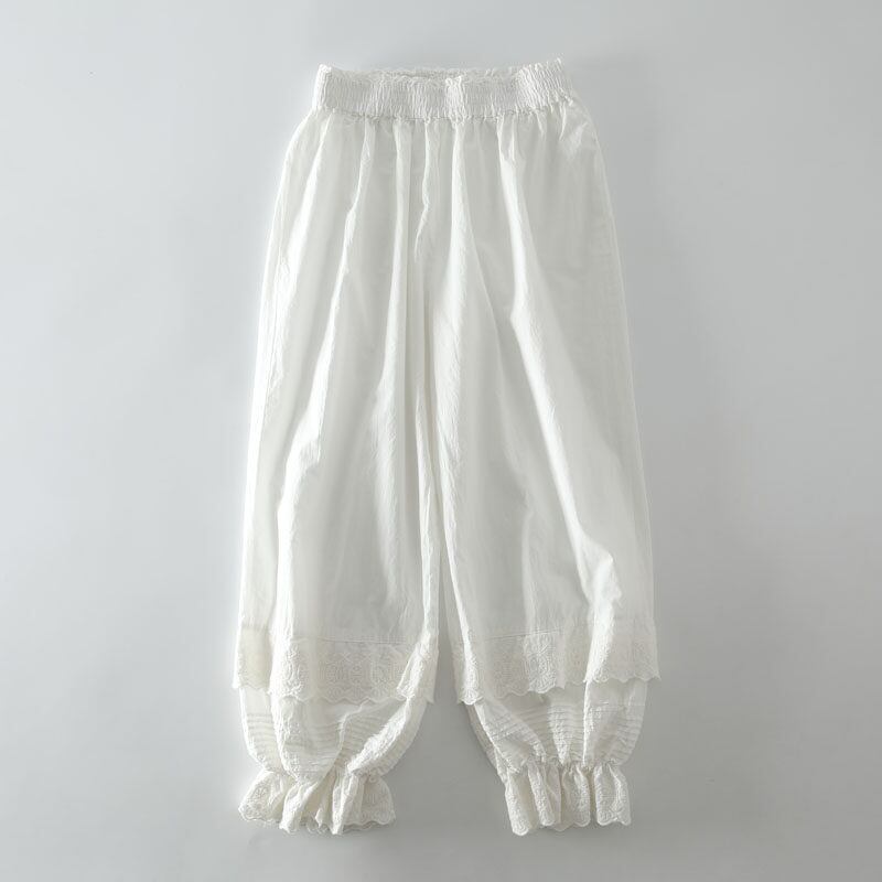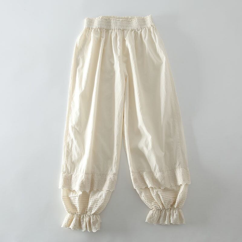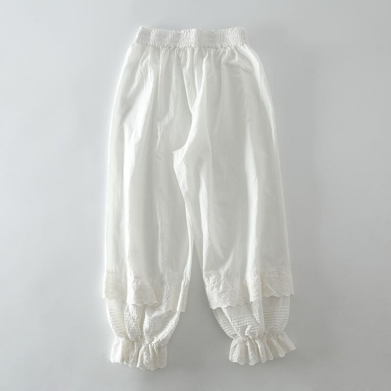 裾のフリルとレースがポイントのパンツです。 長めのトップスやワンピースとのレイヤードに最適なアクセントが魅力的。 ウエストゴム仕様でリラックスした履き心地。 普段使いはもちろん、お部屋でのリラックスタイムにもおすすめです。 ■サイズ 【F】 ウエスト:64-104cm ヒップ:120cm 股上(前):34cm 股上(後):40cm わたり幅:35cm 総丈:89cm 海外製品の為1~3cm誤差がある場合がございます。 ■カラー ライトベージュ ホワイト ブラック ■素材 コットン ShopのTOPページはこちら↓ https://shop.laceandclover.com/ ■注意事項 ・当店の商品はご注文を受けてから、一つ一つ、発注、検品をしています。 ・その為、1~3週間で発送となります。お時間いただきますので、余裕を持ってご購入お願い致します。 ・タイミングによっては 商品在庫切れにより、注文キャンセルとさせていただく恐れもございますので、予めご了承くださいませ。 その場合はショップからメールでご連絡いたします。 ・こちらは輸入品となります。日本製とは検品基準が異なる為、ご理解のうえご購入ください。 ・商品の色味は、お手持ちのデバイスの画面によって実物と若干異なる場合がございます。 ・イメージ違いやサイズ交換等、お客さまご都合による交換、返品はご遠慮ください。 ・SHOPの『ご購入前に必ずお読みください』をよく読んでから、ご購入お願いします。 https://shop.laceandclover.com/about