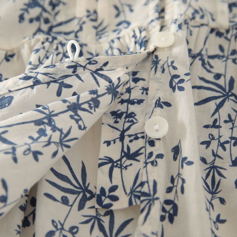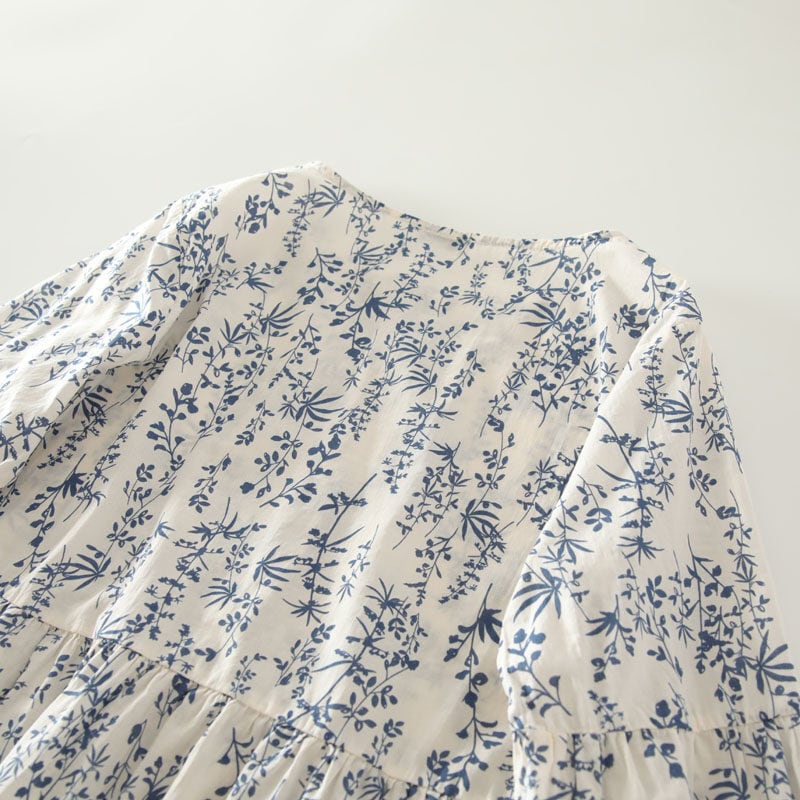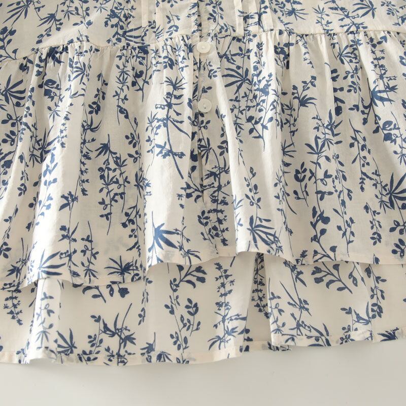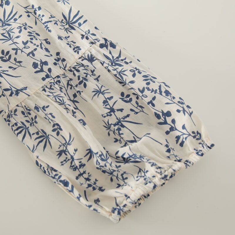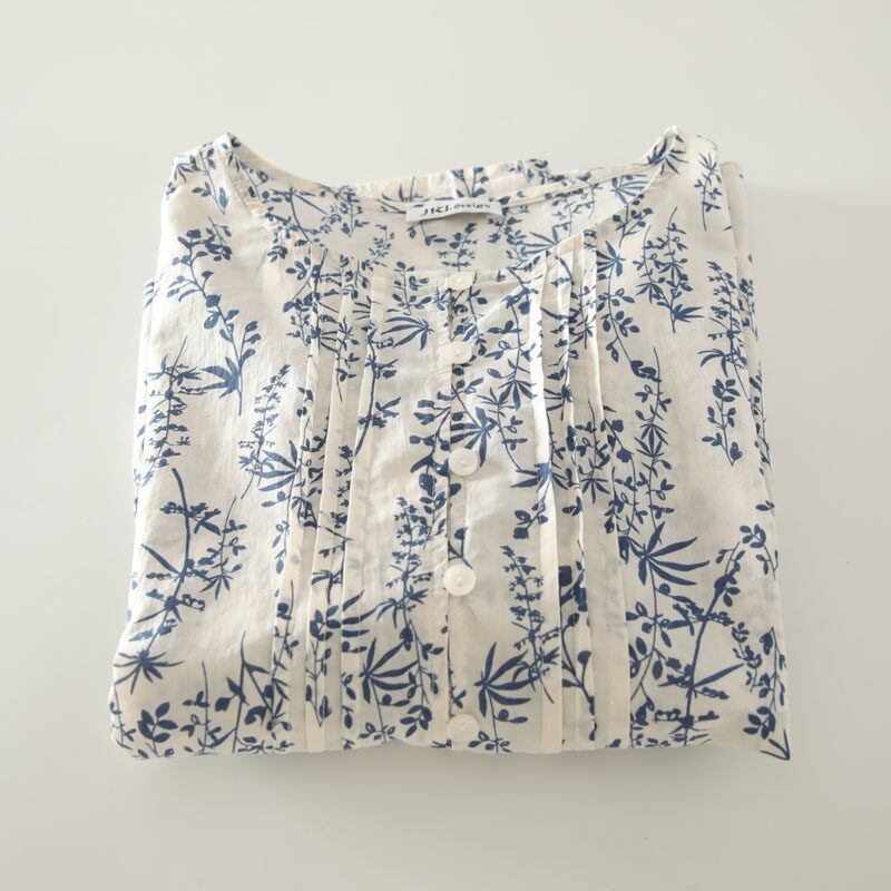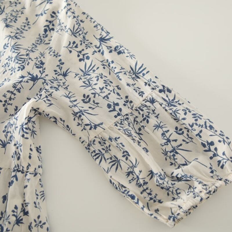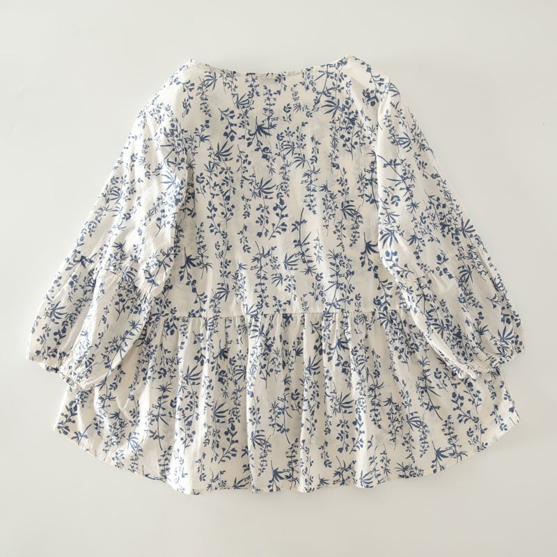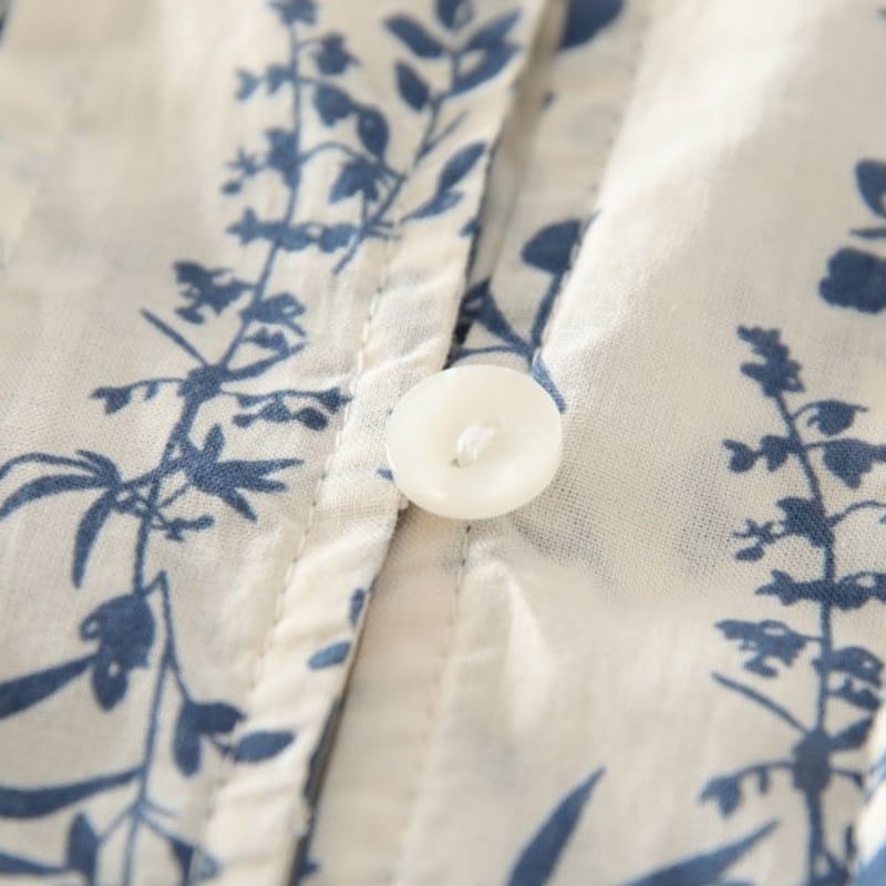 全体に施されたボタニカルパターンが目を惹くブラウスです。