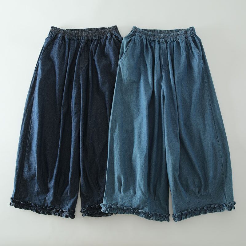 裾のフリルがさりげないアクセントになったクロップドパンツです。