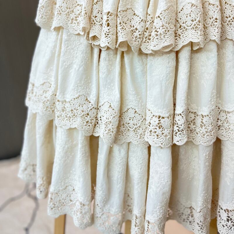 ボリュームのあるティアードデザインが、歩くたびに優雅な印象を与えます。