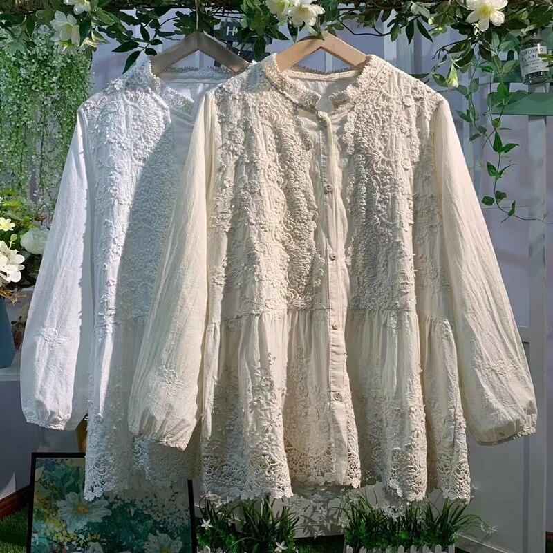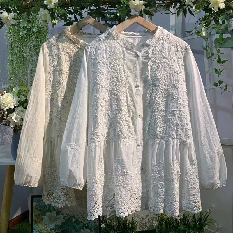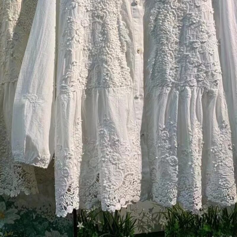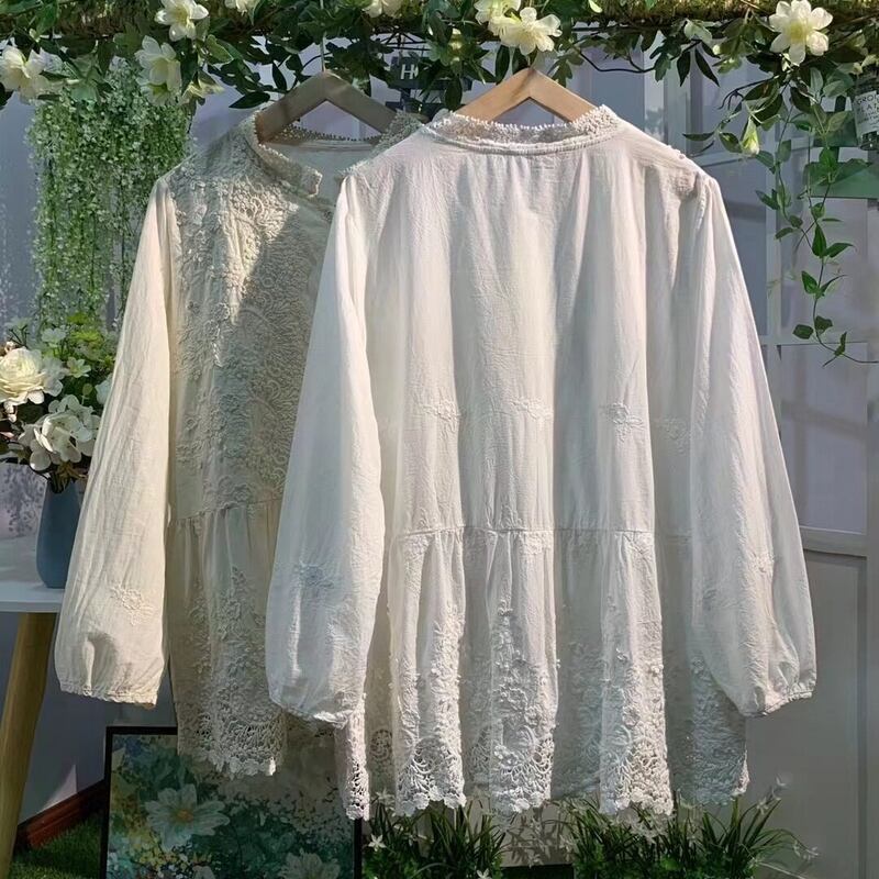 上品な刺繍デザインが目を惹くワンピースシルエットのブラウスです。