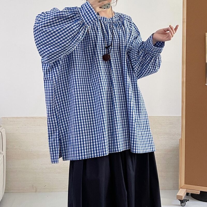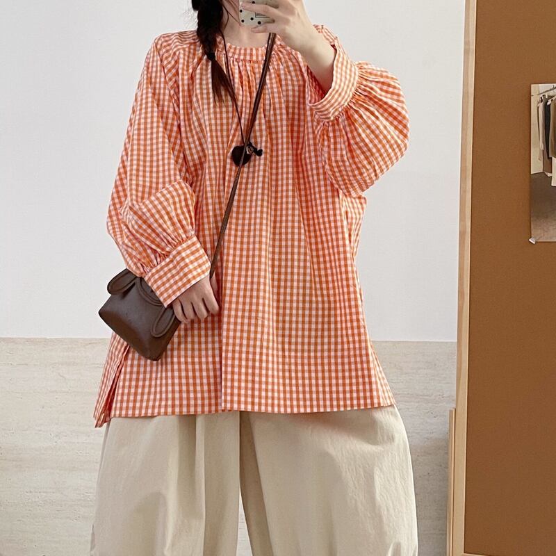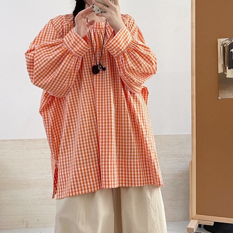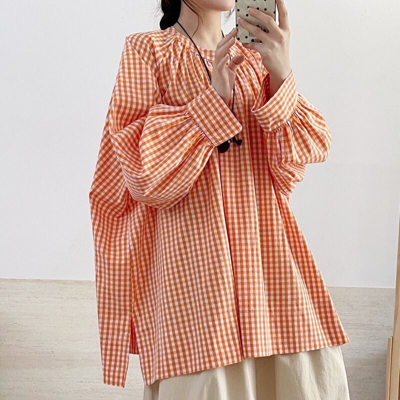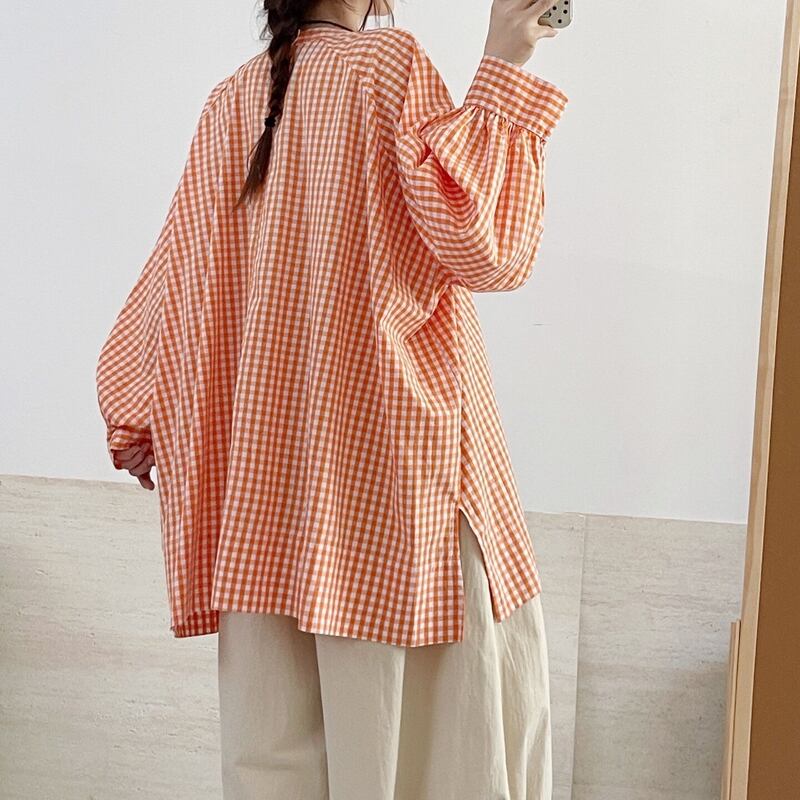 ギンガムチェックサイドスリットシャツ 2col 1114