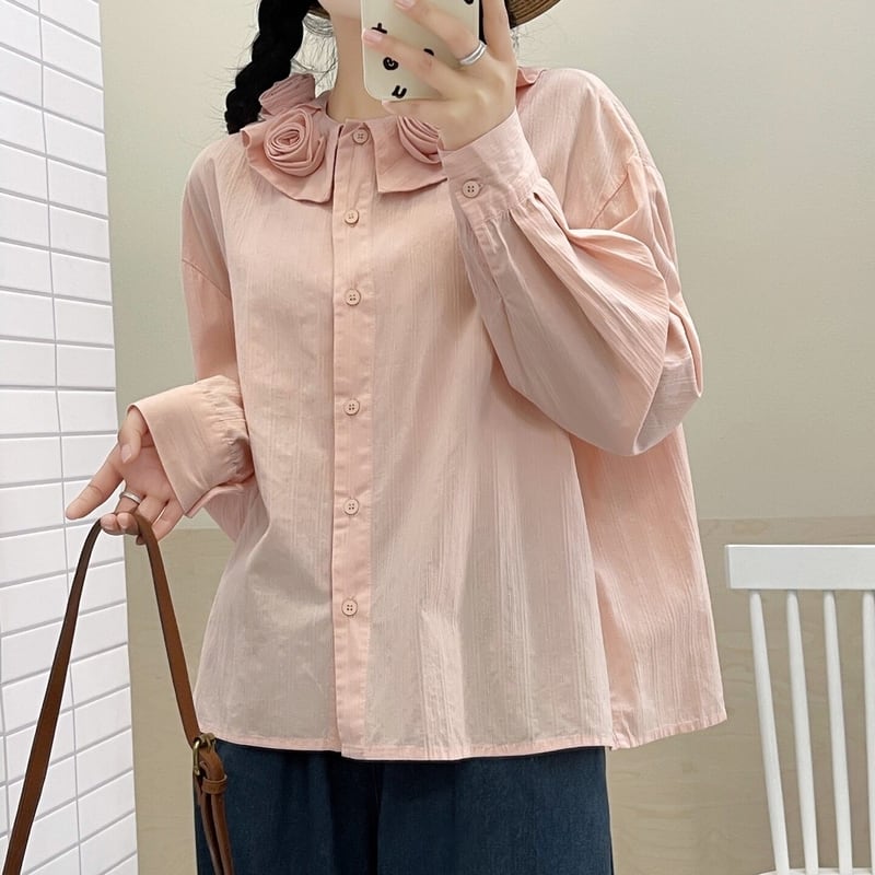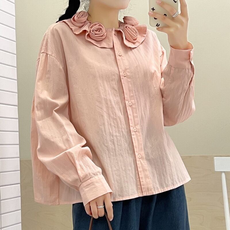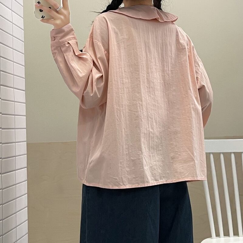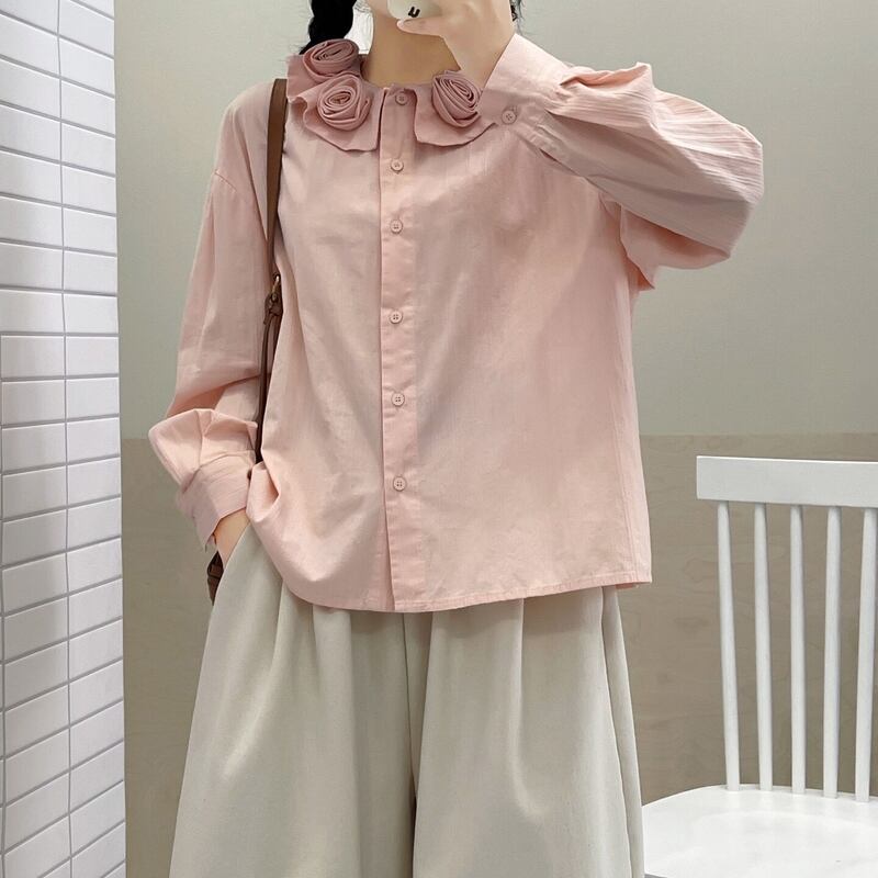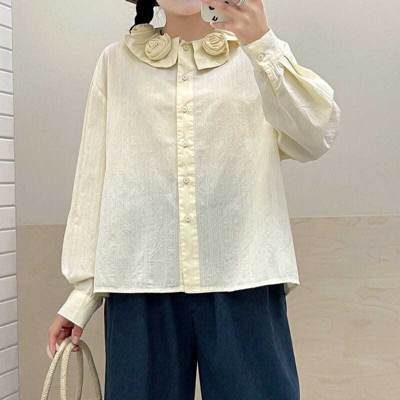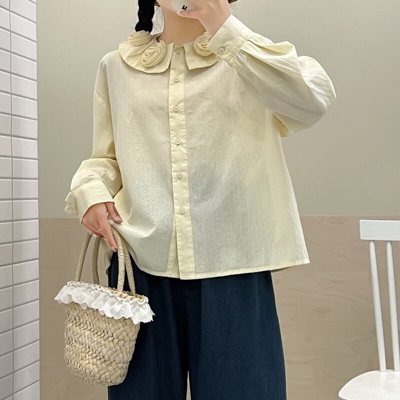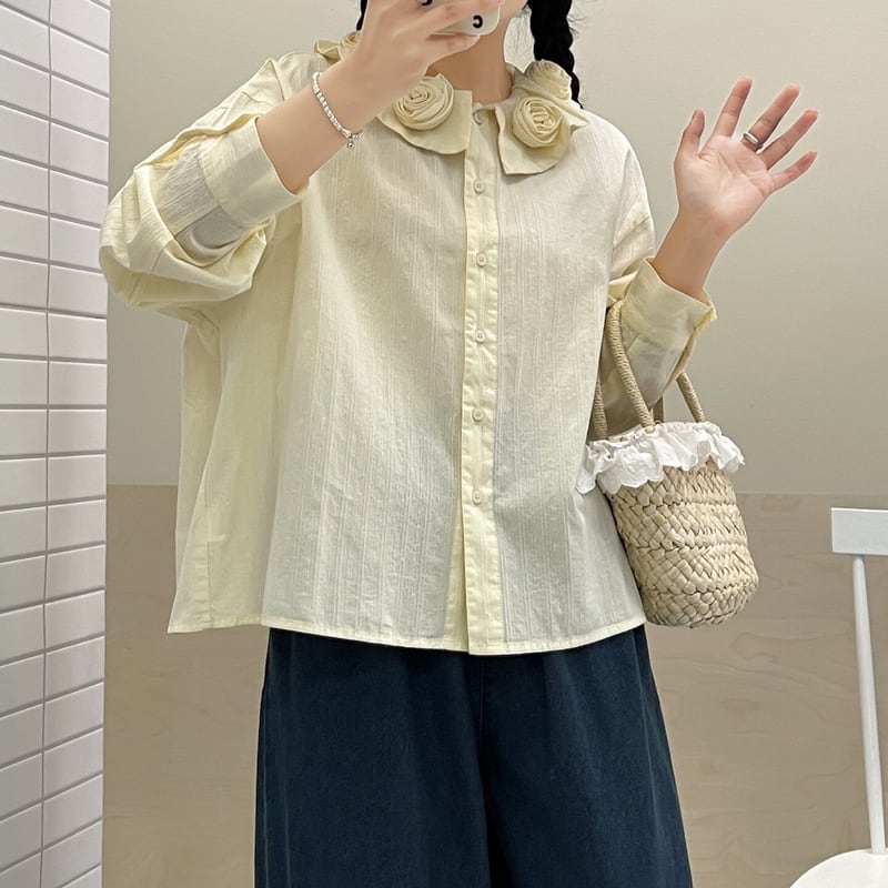 ローズモチーフ襟ストライプシャツ 2col 1116